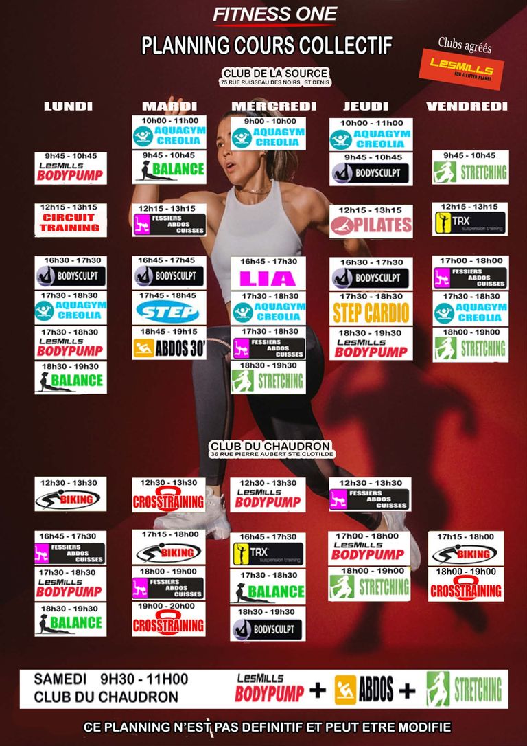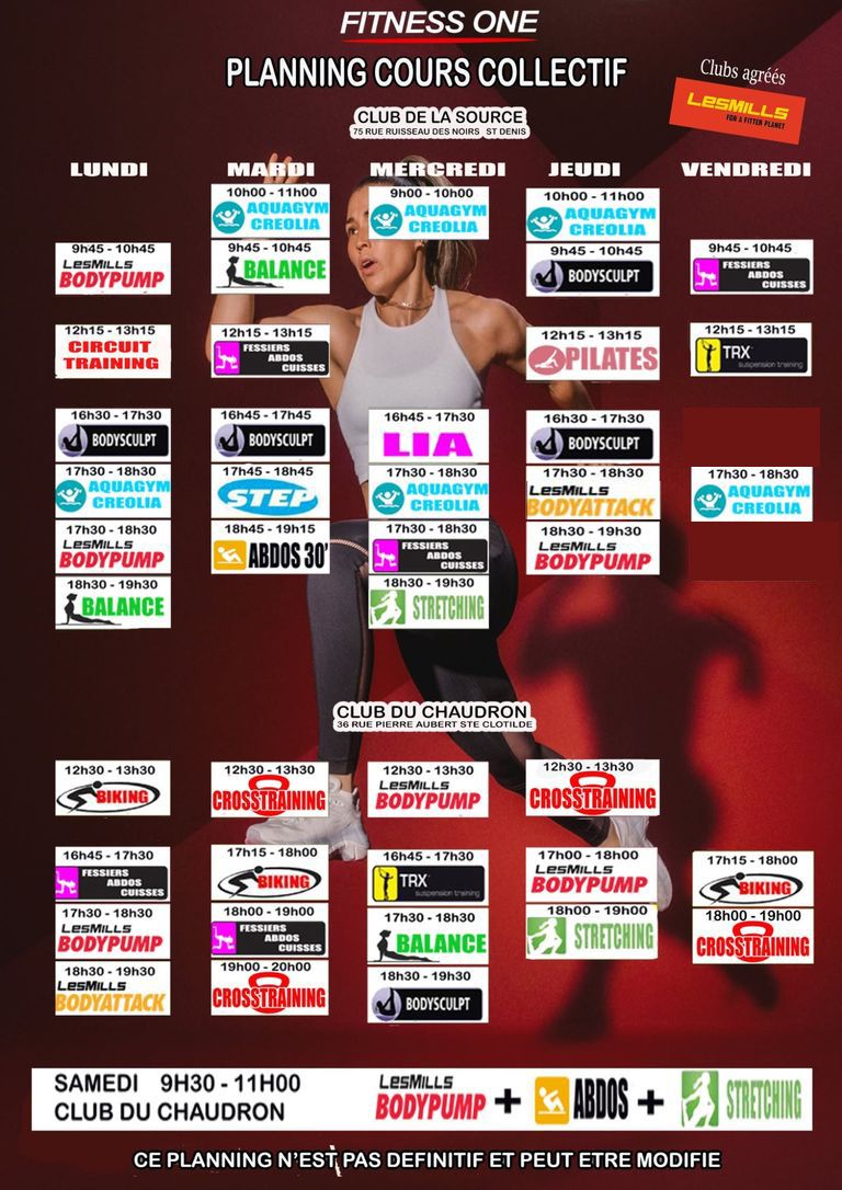 Renfo, cardio, dance, aqua, cross training, yoga, stretching, pilates et tout ça 6 jours sur 7 !!